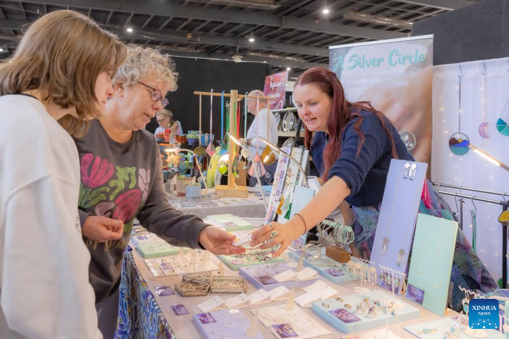 CANBERRA, 29 junio, 2024 (Xinhua) -- Personas visitan el Mercado Artesanal de Canberra 2024 en el Parque de Exposiciones, en Canberra, Australia, el 29 de junio de 2024. (Xinhua/Chu Chen)