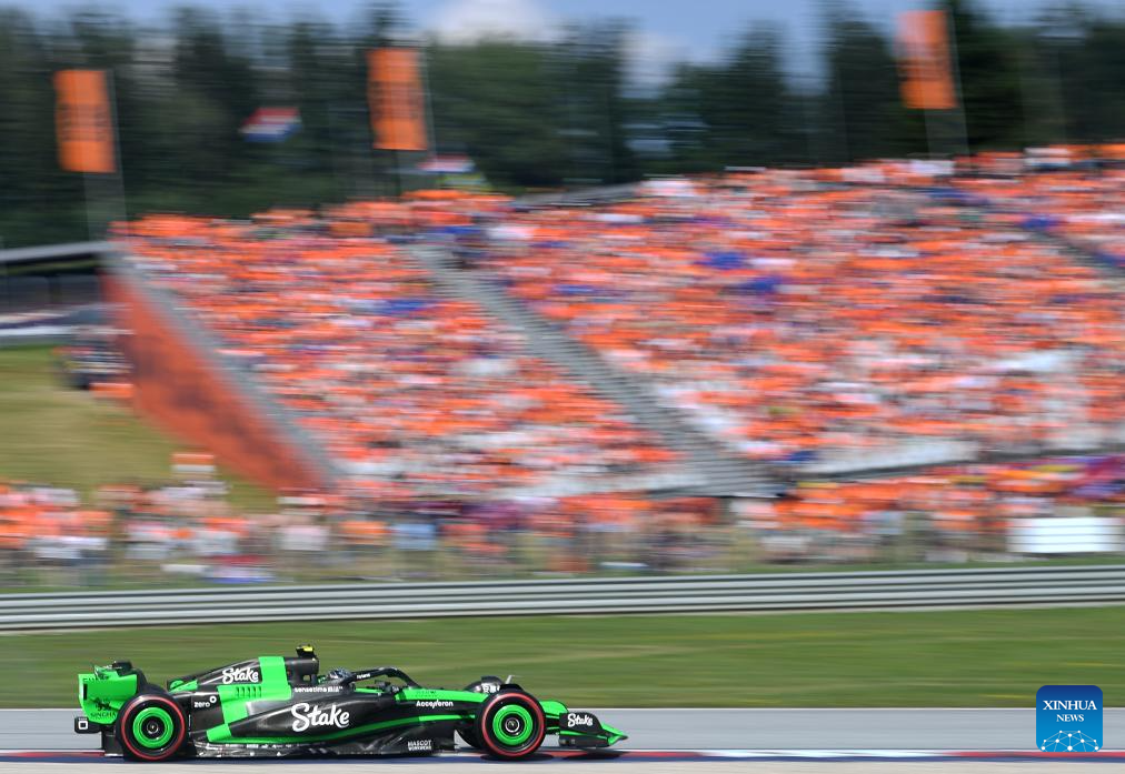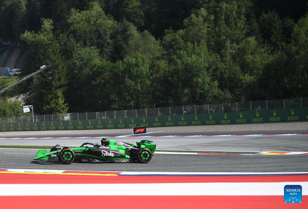 SPIELBERG, 30 junio, 2024 (Xinhua) -- Imagen del 29 de junio de 2024 del piloto chino de la escudería Kick Sauber, Zhou Guanyu, compitiendo durante la sesión de clasificación del Gran Premio de Austria de Fórmula 1, en Spielberg, Austria. (Xinhua/He Canling)