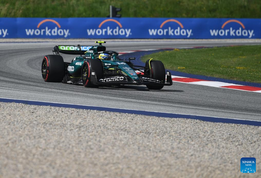 SPIELBERG, 30 junio, 2024 (Xinhua) -- Imagen del 29 de junio de 2024 del piloto español de la escudería Aston Martin, Fernando Alonso, compitiendo durante la sesión de clasificación del Gran Premio de Austria de Fórmula 1, en Spielberg, Austria. (Xinhua/He Canling)