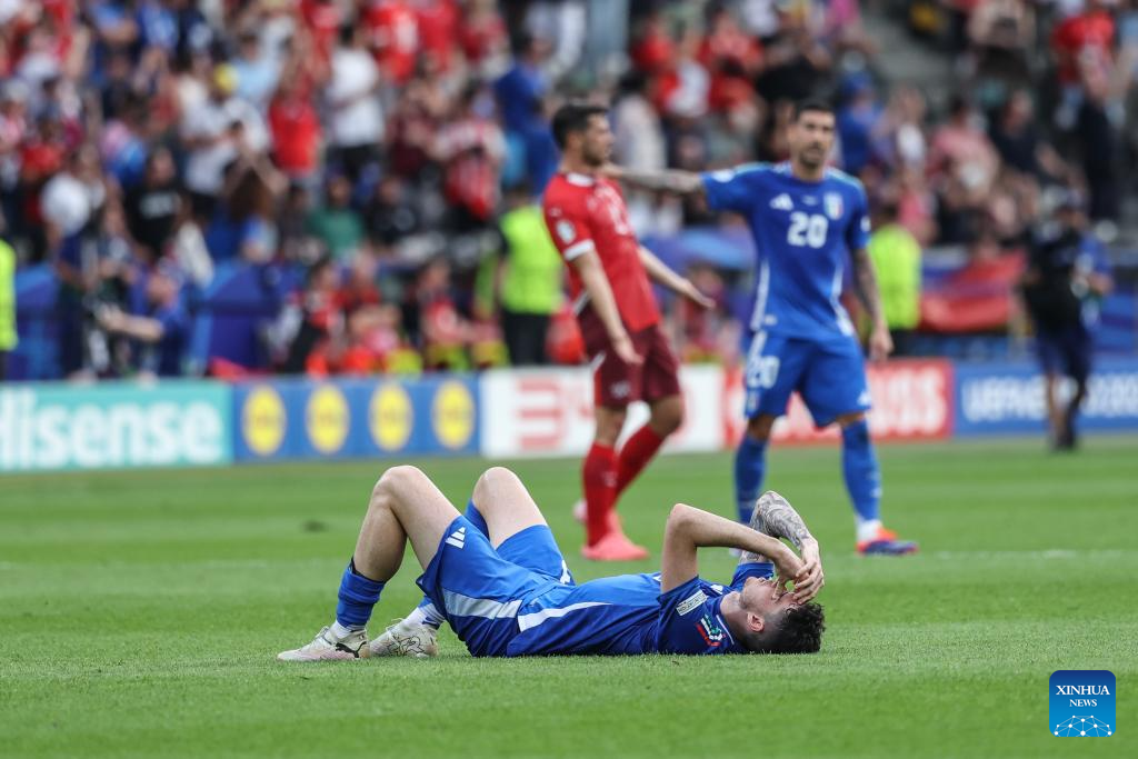 BERLIN, 30 junio, 2024 (Xinhua) -- Imagen del 29 de junio de 2024 de Alessandro Bastoni, de Italia, reaccionando al término del partido correspondiente a los octavos de final de la EURO 2024 de la UEFA, entre Suiza e Italia, en Berlín, Alemania. (Xinhua/Pan Yulong)