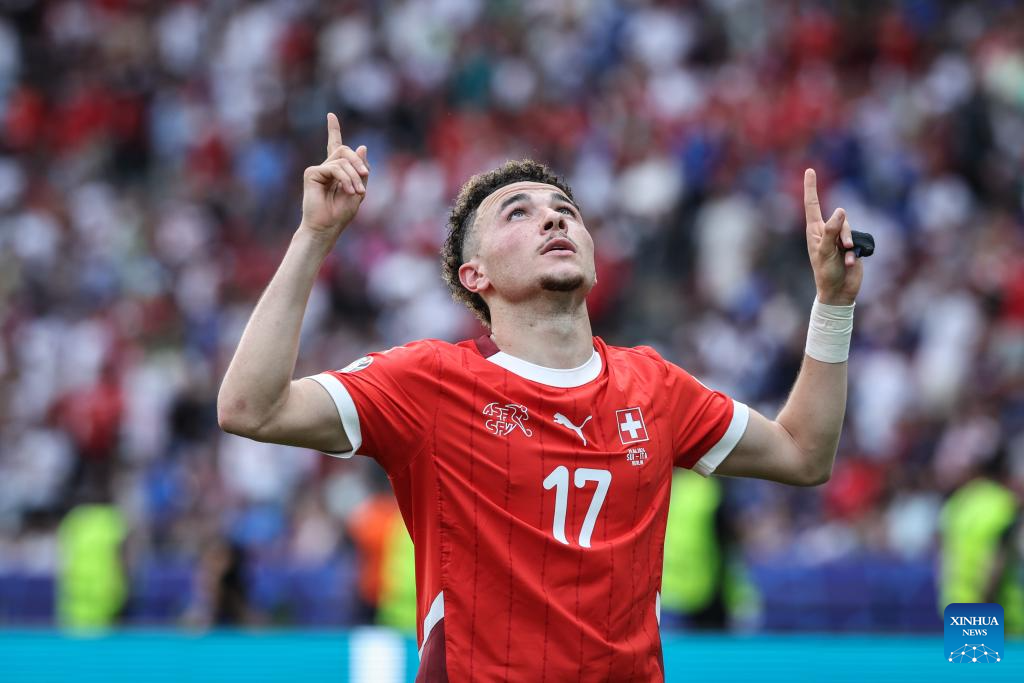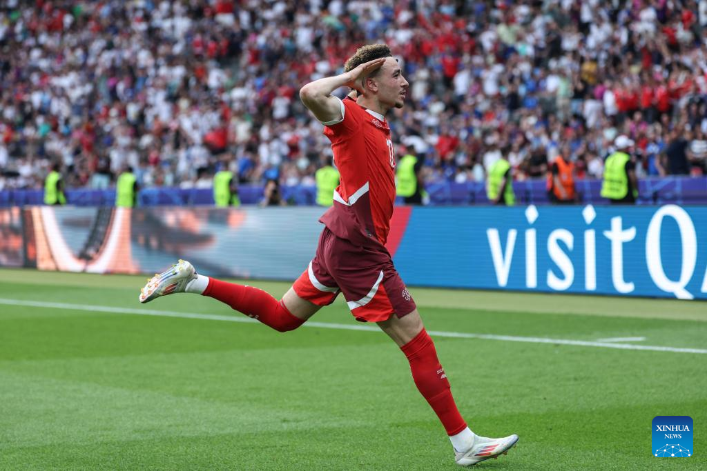 BERLIN, 30 junio, 2024 (Xinhua) -- Imagen del 29 de junio de 2024 de Ruben Vargas, de Suiza, festejando su anotación durante el partido correspondiente a los octavos de final de la EURO 2024 de la UEFA, entre Suiza e Italia, en Berlín, Alemania. (Xinhua/Pan Yulong)