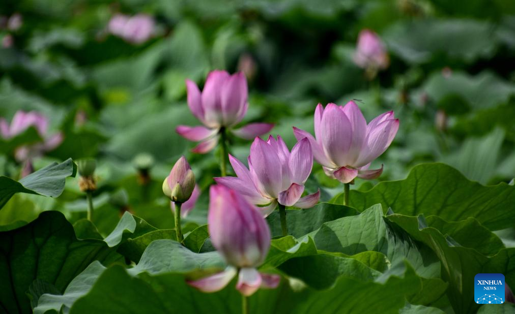 BEIJING, 30 junio, 2024 (Xinhua) -- Imagen del 30 de junio de 2024 de flores de loto en el parque Yuanmingyuan, en Beijing, capital de China. (Xinhua/Li Xin)