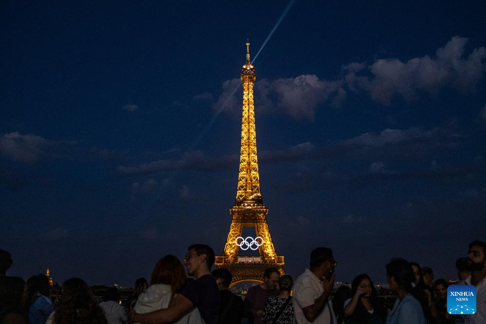 PARIS, 30 junio, 2024 (Xinhua) -- Imagen del 28 de junio de 2024 de la Torre Eiffel con los Aros Olímpicos, en París, Francia. Con menos de 30 días para la ceremonia de apertura, París se encuentra en las últimas fases de preparación para los Juegos Olímpicos de Verano 2024. (Xinhua/Sun Fei)