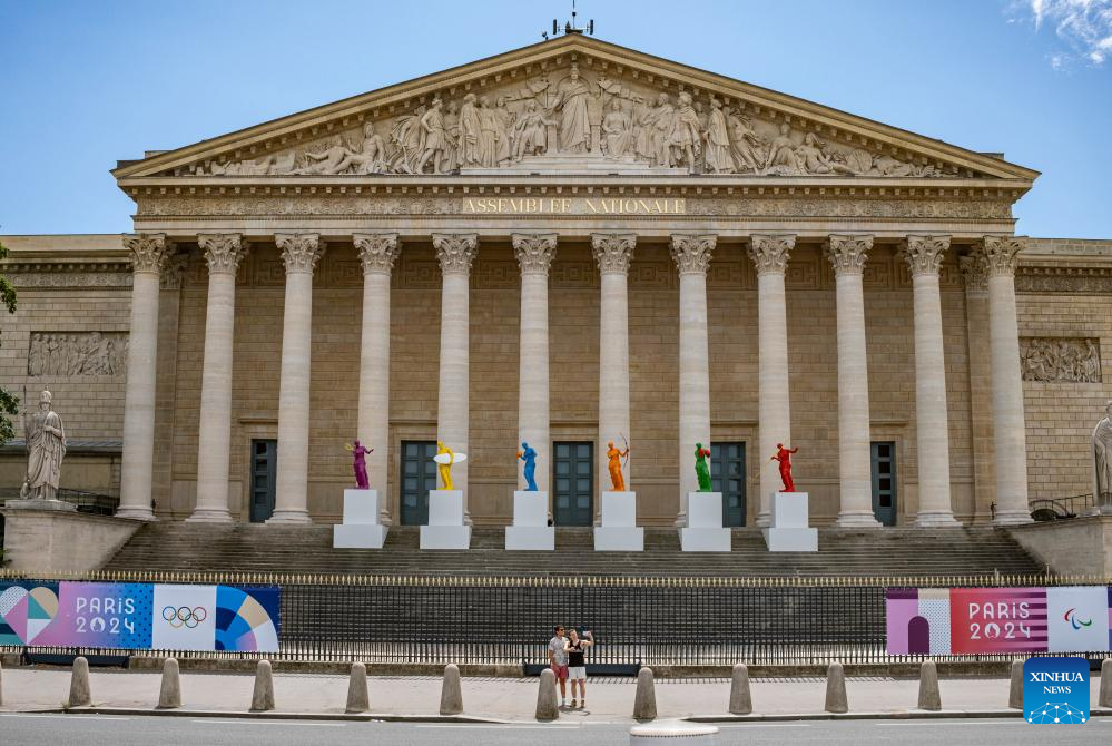 PARIS, 30 junio, 2024 (Xinhua) -- Imagen del 28 de junio de 2024 de esculturas y decoraciones temáticas de los Juegos Olímpicos y Paralímpicos frente a la Asamblea Nacional, en París, Francia. Con menos de 30 días para la ceremonia de apertura, París se encuentra en las últimas fases de preparación para los Juegos Olímpicos de Verano 2024. (Xinhua/Sun Fei)