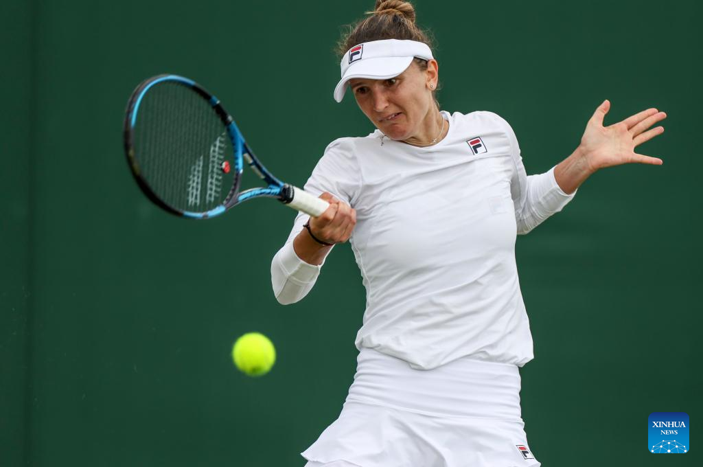 LONDRES, 1 julio, 2024 (Xinhua) -- Irina-Camelia Begu devuelve la pelota durante el partido de la primera ronda de individuales femeninos entre Zhu Lin, de China, e Irina-Camelia Begu, de Rumania, en el Campeonato de Tenis de Wimbledon, en Londres, Reino Unido, el 1 de julio de 2024. (Xinhua/Han Yan)