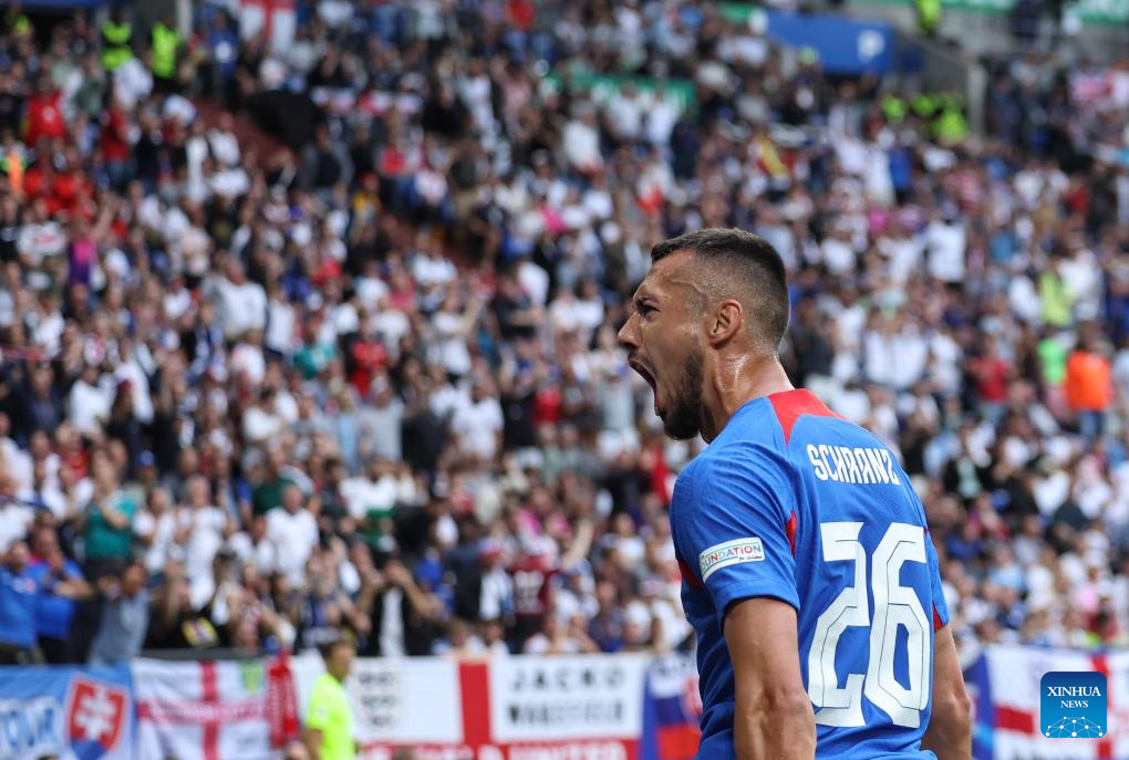 GELSENKIRCHEN, 1 julio, 2024 (Xinhua) -- Imagen del 30 de junio de 2024 de Ivan Schranz, de Eslovaquia, festejando su anotación durante el partido correspondiente a los octavos de final de la EURO 2024 de la UEFA, entre Inglaterra y Eslovaquia, en Gelsenkirchen, Alemania. (Xinhua/Bai Xuefei)