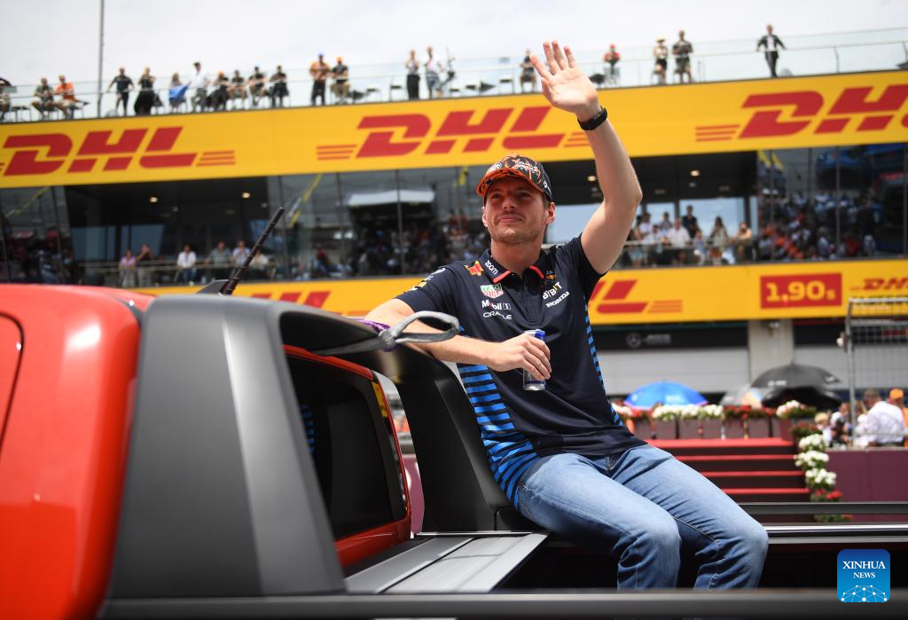 SPIELBERG, 1 julio, 2024 (Xinhua) -- Imagen del 30 de junio de 2024 del piloto neerlandés de la escudería Red Bull, Max Verstappen, asistiendo al desfile de pilotos previo a la carrera del Gran Premio de Austria de Fórmula 1, en Spielberg, Austria. (Xinhua/He Canling)