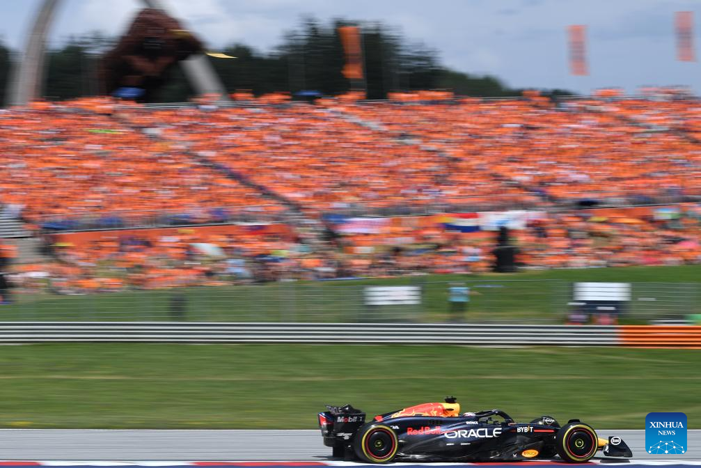 SPIELBERG, 1 julio, 2024 (Xinhua) -- Imagen del 30 de junio de 2024 del piloto neerlandés de la escudería Red Bull, Max Verstappen, compitiendo durante la carrera del Gran Premio de Austria de Fórmula 1, en Spielberg, Austria. (Xinhua/He Canling)