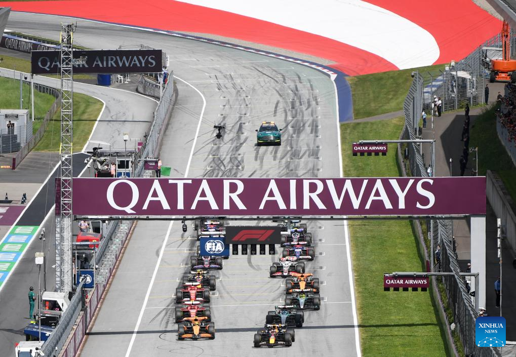 SPIELBERG, 1 julio, 2024 (Xinhua) -- Imagen del 30 de junio de 2024 de los pilotos comenzando la carrera del Gran Premio de Austria de Fórmula 1, en Spielberg, Austria. (Xinhua/He Canling)
