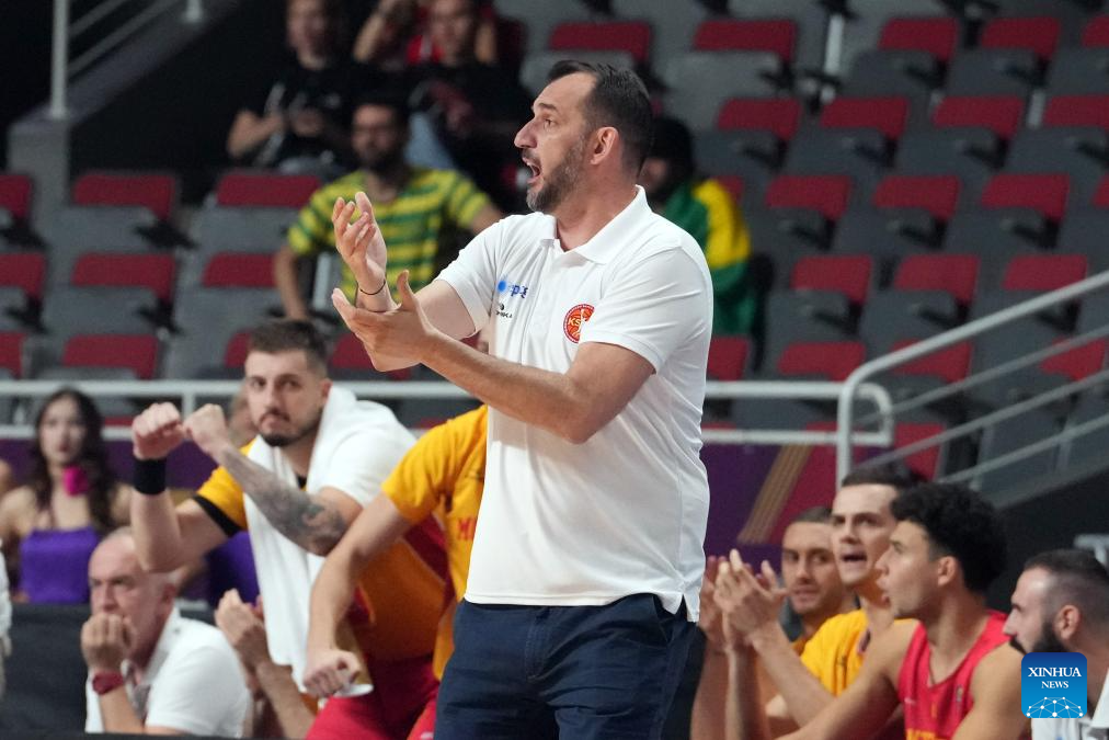 RIGA, 3 julio, 2024 (Xinhua) -- Imagen del 2 de julio de 2024 del director técnico de Montenegro, Bosko Radovic, gesticulando durante el partido correspondiente al Grupo B del Torneo Masculino de Clasificación Olímpica FIBA 2024, entre Brasil y Montenegro, en Riga, Letonia. (Xinhua/Edijs Palens)