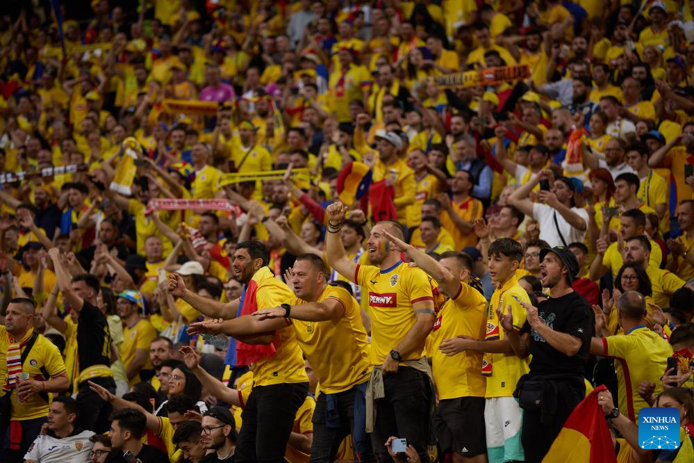 MUNICH, 3 julio, 2024 (Xinhua) -- Imagen del 2 de julio de 2024 de aficionados de Rumania reaccionando al término del partido correspondiente a los octavos de final de la EURO 2024 de la UEFA, entre Rumania y Países Bajos, en Múnich, Alemania. (Xinhua/Meng Dingbo)