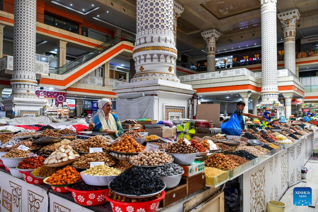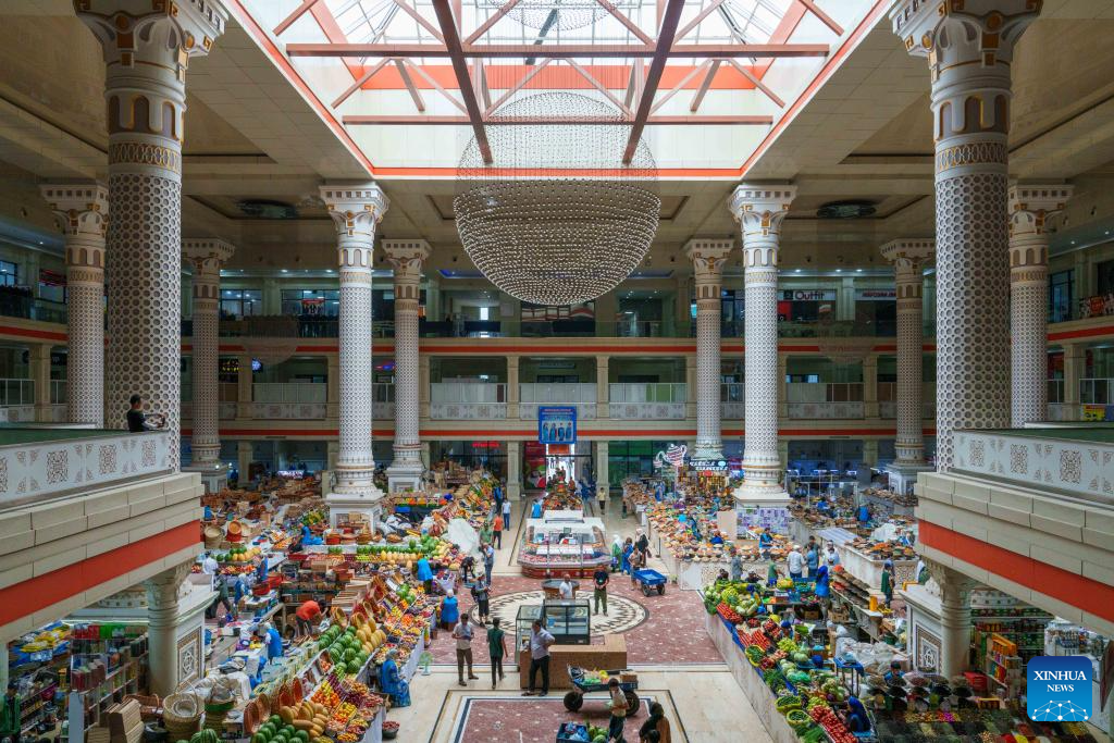 DUSAMBE, 4 julio, 2024 (Xinhua) -- Imagen del 1 de julio de 2024 del interior de un gran bazar, en Dusambé, Tayikistán. El gran bazar es una cautivadora atracción comercial en Dusambé, con una arquitectura distintiva y una maravillosa variedad de productos. (Xinhua/Zhou Dixiao)