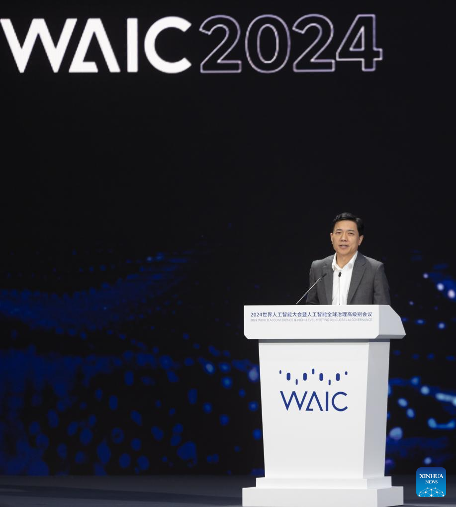 SHANGHAI, 4 julio, 2024 (Xinhua) -- Li Yanhong, presidente y director ejecutivo de Baidu, habla en un foro principal de la Conferencia Mundial de IA de 2024, en Shanghai, en el este de China, el 4 de julio de 2024. La Conferencia Mundial de IA y la Reunión de alto nivel sobre la gobernanza mundial de la IA de 2024 se inauguraron aquí el jueves. La Conferencia Mundial de IA de este año se centra en el tema "Gobernar la IA para el bien y para todos" con el objetivo establecer plataformas internacionales de cooperación e intercambio que ofrezcan apertura, inclusión y participación igualitaria, avanzar en la gobernanza global de la IA y desarrollar un mecanismo de gobernanza abierto, justo y efectivo. La conferencia reúne a funcionarios gubernamentales y representantes de organizaciones, industrias, universidades e institutos de investigación internacionales, entre otros. (Xinhua/Wang Xiang)