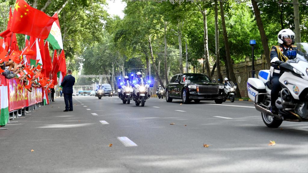 De camino al aeropuerto, representantes de la comunidad china local y de las instituciones de capital chino ondeaban las banderas nacionales de China y Tayikistán a ambos lados de la carretera, felicitándole a Xi por el éxito total de su visita de Estado.