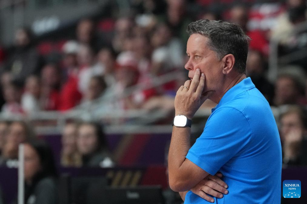 RIGA, 5 julio, 2024 (Xinhua) -- Imagen del 4 de julio de 2024 del entrenador, Tim Cone, de Filipinas, reaccionando durante el partido correspondiente al Grupo A del Torneo Masculino de Clasificación Olímpica FIBA 2024, entre Filipinas y Georgia, en Riga, Letonia. (Xinhua/Edijs Palens)