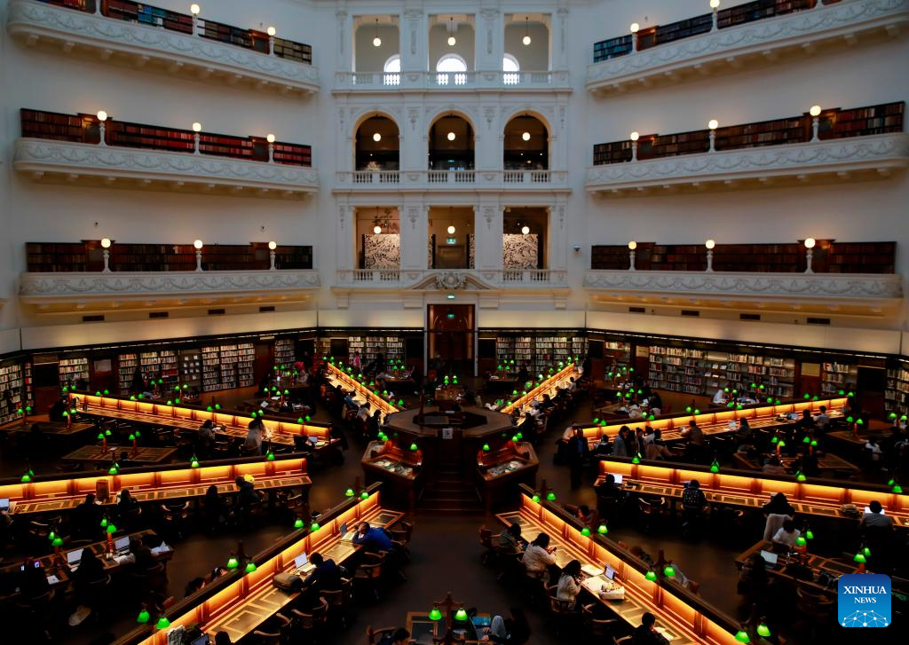 MELBOURNE, 6 julio, 2024 (Xinhua) -- Imagen del 4 de julio de 2024 de una vista interior de la Biblioteca Estatal de Victoria, en Melbourne, Australia. (Xinhua/Ma Ping)