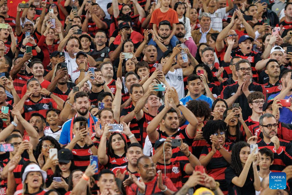 RÍO DE JANEIRO, 7 julio, 2024 (Xinhua) -- Imagen del 6 de julio de 2024 de aficionados de Flamengo reaccionando previo al partido correspondiente a la jornada 15 del Campeonato Brasileño Serie A, ante Cuiabá, celebrado en el Estadio Maracaná, en Río de Janeiro, Brasil. (Xinhua/Claudia Martini)