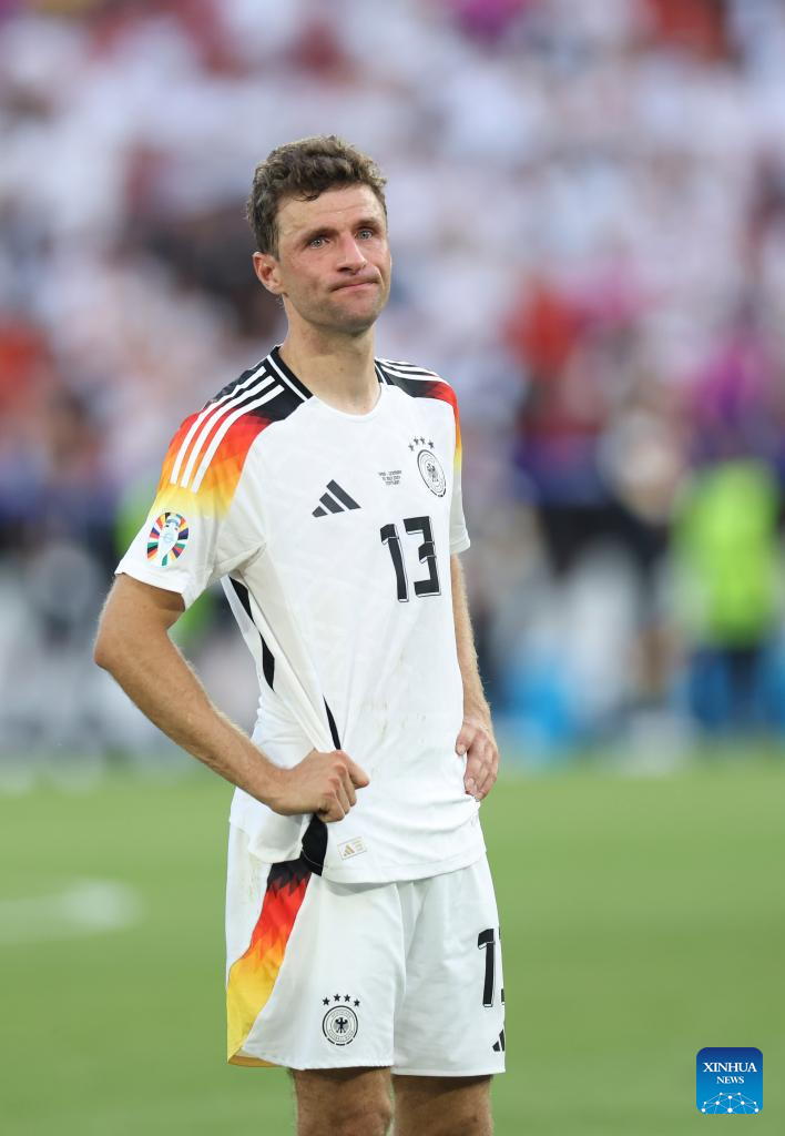STUTTGART, 6 julio, 2024 (Xinhua) -- Imagen del 5 de julio de 2024 de Thomas Müller, de Alemania, reaccionando durante el partido correspondiente a los cuartos de final de la EURO 2024 de la UEFA, entre España y Alemania, en Stuttgart, Alemania. (Xinhua/Bai Xuefei)