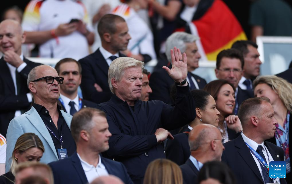 STUTTGART, 6 julio, 2024 (Xinhua) -- Imagen del 5 de julio de 2024 del exguardameta Oliver Kahn (c), de Alemania, reaccionando previo al partido correspondiente a los cuartos de final de la EURO 2024 de la UEFA, entre España y Alemania, en Stuttgart, Alemania. (Xinhua/Bai Xuefei)