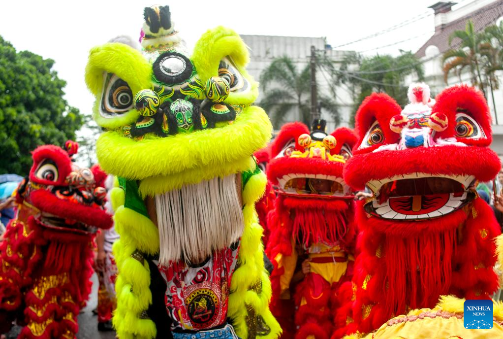 BANDUNG, 6 julio, 2024 (Xinhua) -- Artistas de la danza del león participan en el Festival Asia-Africa 2024, en Bandung, Java Occidental, Indonesia, el 6 de julio de 2024. El festival se llevó a cabo en el sitio histórico de la Calle Asia Africa en Bandung para promover el turismo en Java Occidental. (Xinhua/Septianjar Muharam)