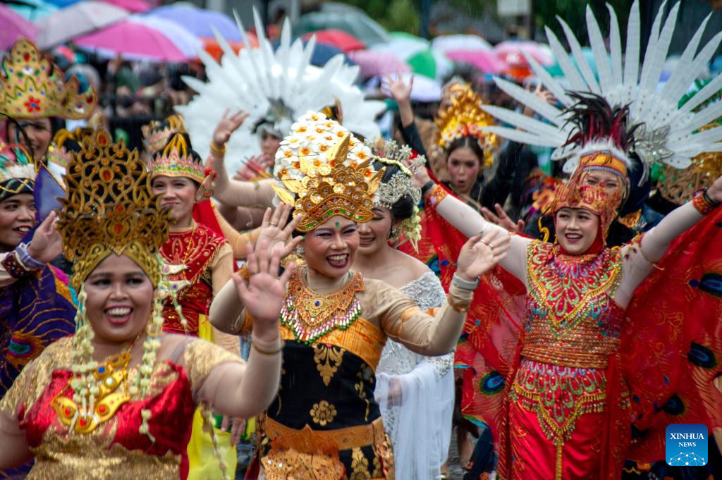 BANDUNG, 6 julio, 2024 (Xinhua) -- Personas participan en el Festival Asia-Africa 2024, en Bandung, Java Occidental, Indonesia, el 6 de julio de 2024. El festival se llevó a cabo en el sitio histórico de la Calle Asia Africa en Bandung para promover el turismo en Java Occidental. (Xinhua/Septianjar Muharam)