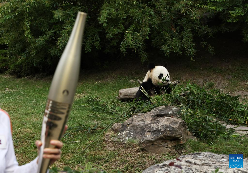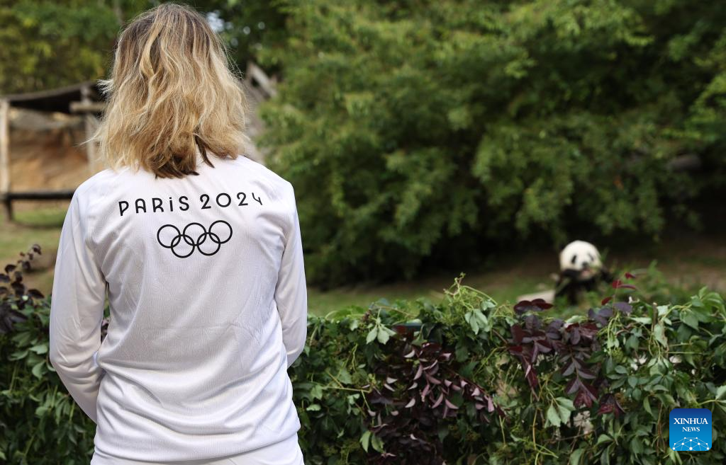 SAINT-AIGNAN, 8 julio, 2024 (Xinhua) -- La panda gigante Yuan Zai es vista previo al relevo de la llama olímpica de París 2024 en el zoológico de Beauval, en Saint-Aignan, en el centro de Francia, el 8 de julio de 2024. (Xinhua/Gao Jing)