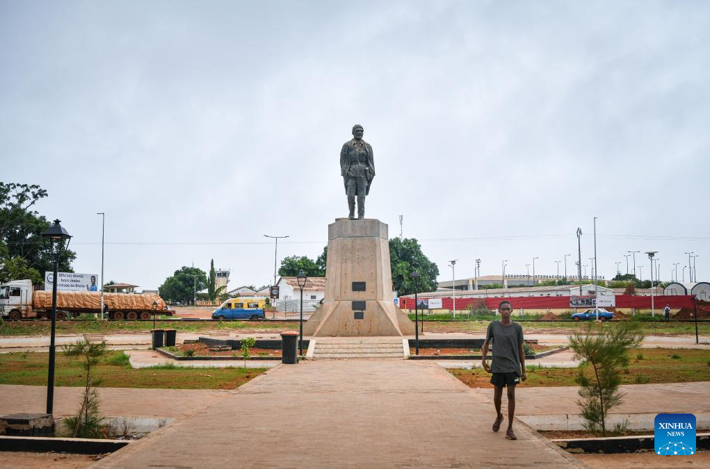 BISSAU, 9 julio, 2024 (Xinhua) -- Imagen del 7 de julio de 2024 de una plaza con una estatua de Amílcar Lopes Cabral, el padre fundador de Guinea-Bissau, en Bissau, Guinea-Bissau. Guinea-Bissau está ubicada en la costa occidental de Africa, limitando al norte con Senegal, al este y al sur con Guinea y al oeste con el océano Atlántico. Bissau es la capital de Guinea-Bissau, así como el centro político, económico y cultural del país. (Xinhua/Han Xu)