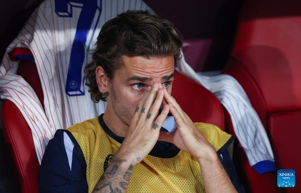MUNICH, 10 julio, 2024 (Xinhua) -- Imagen del 9 de julio de 2024 de Antoine Griezmann, de Francia, reaccionando al término del partido correspondiente a la semifinal de la EURO 2024 de la UEFA, entre España y Francia, en Múnich, Alemania. (Xinhua/Bai Xuefei)