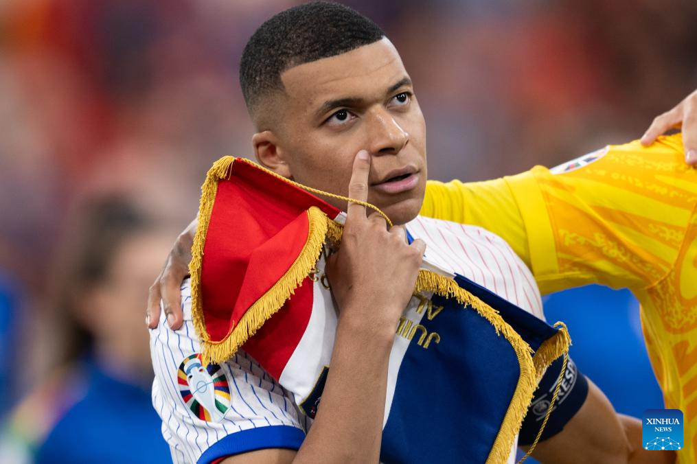 MUNICH, 10 julio, 2024 (Xinhua) -- Imagen del 9 de julio de 2024 de Kylian Mbappé, de Francia, reaccionando previo al partido correspondiente a la semifinal de la EURO 2024 de la UEFA, entre España y Francia, en Múnich, Alemania. (Xinhua/Xiao Yijiu)