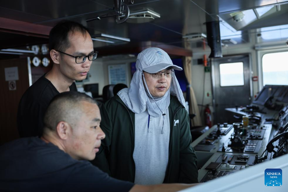 HAIKOU, 10 julio, 2024 (Xinhua) -- Imagen del 5 de julio de 2024 de miembros de un equipo de expedición de biodiversidad marina verificando información de navegación en un barco en las aguas en el este de la isla de Hainan, en el sur de China. Una expedición de biodiversidad marina de 5 días llevada a cabo en Hainan concluyó el lunes. Los expertos afirman que la recientemente rescatada y liberada ballena piloto de aleta corta "Haitang" se encuentra en buenas condiciones. La ballena macho "Haitang" fue encontrada herida y varada en la bahía de Haitang de la ciudad de Sanya el 3 de enero, y fue enviada al Centro de Conservación Animal Haichang de Sanya para recibir tratamiento. Fue liberada nuevamente al mar el 26 de mayo después de una investigación y discusión exhaustivas por parte de los expertos. Basado en la información de un dispositivo de señalización colocado en su lomo, "Haitang" muestra buenas habilidades para vivir en libertad y adaptabilidad al entorno de las profundidades marinas. Dentro de su zona de nado, el equipo de expedición avistó una gran cantidad de ballenas piloto de aleta corta. De acuerdo con Li Songhai, científico jefe del equipo e investigador del Instituto de Ciencia e Ingeniería de Aguas Profundas (IDSSE, por sus siglas en inglés) de la Academia de Ciencias de China (CAS, por sus siglas en inglés), esto es un claro indicio de que "Haitang" ya ha encontrado su manada. "Esta es la primera ballena piloto de aleta corta rescatada con éxito en China", dijo Pu Bingmei, secretario general de la organización sin fines de lucro BlueRibbon Ocean Conservation Association (BROCA), quien señaló que el caso podría ofrecer una referencia importante para las labores de rescate marino. (Xinhua/Zhang Liyun)