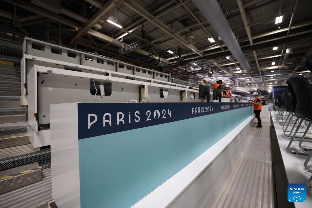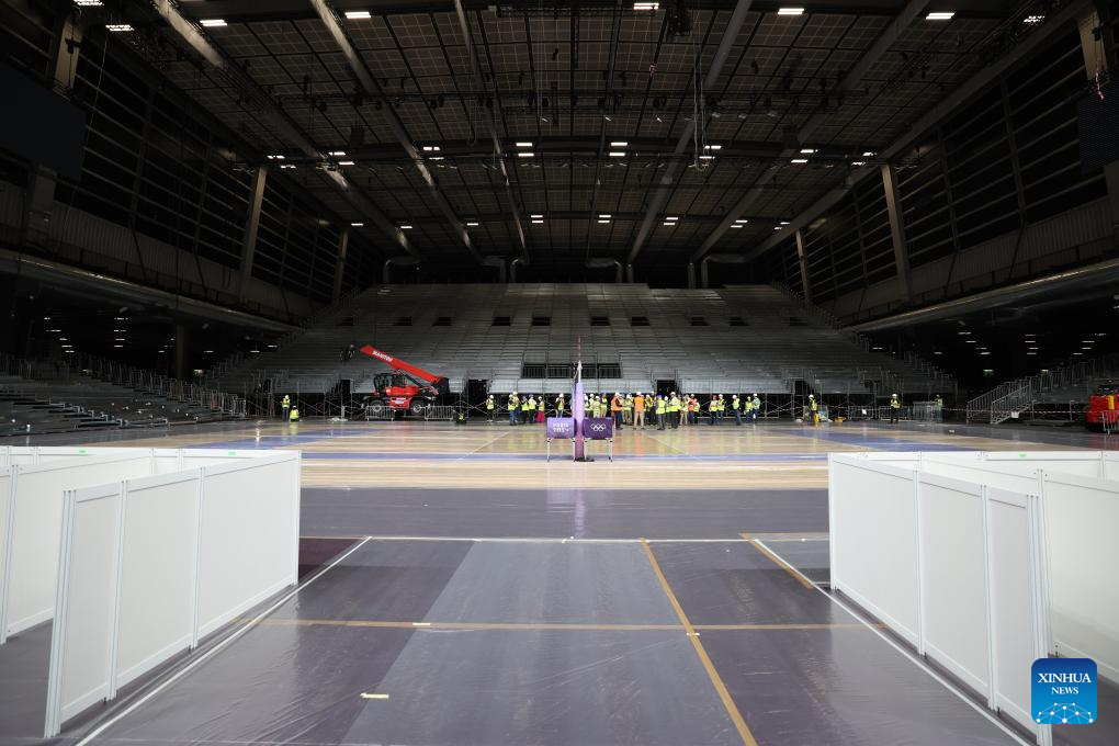 PARIS, 11 julio, 2024 (Xinhua) -- Imagen del 11 de julio de 2024 de las instalaciones deportivas en la París Sur Arena, en París, Francia. La París Sur Arena albergará eventos deportivos como halterofilia, balonmano, tenis de mesa y voleibol durante los Juegos Olímpicos de París 2024. (Xinhua/Julien Mattia)
