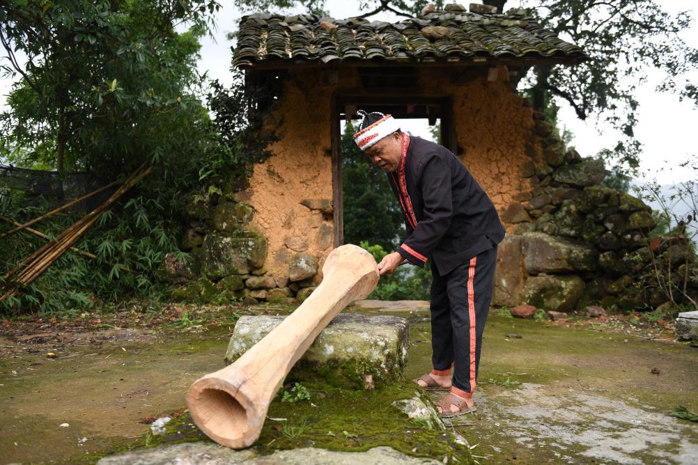 JINXIU, 11 julio, 2024 (Xinhua) -- Imagen del 1 de agosto de 2018 de Pan Zhenwu, heredero de la danza de tambor de barro amarillo, elaborando un tambor de barro amarillo, en el distrito autónomo yao de Jinxiu, en la región autónoma de la etnia zhuang de Guangxi, en el sur de China. La danza de tambor de barro amarillo del grupo étnico yao fue enlistada como patrimonio cultural inmaterial nacional. (Xinhua/Lu Boan)
