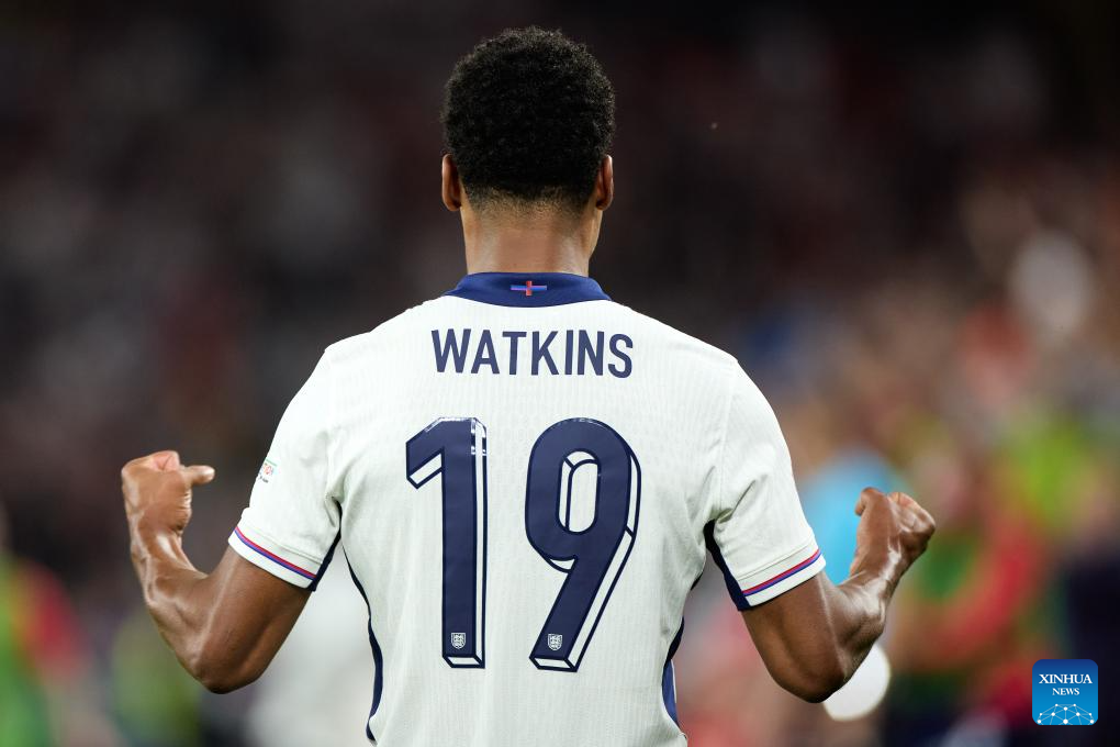 DORTMUND, 11 julio, 2024 (Xinhua) -- Imagen del 10 de julio de 2024 de Ollie Watkins, de Inglaterra, festejando la victoria al término del partido correspondiente a la semifinal de la EURO 2024 de la UEFA, entre Inglaterra y Países Bajos, en Dortmund, Alemania. (Xinhua/Meng Dingbo)