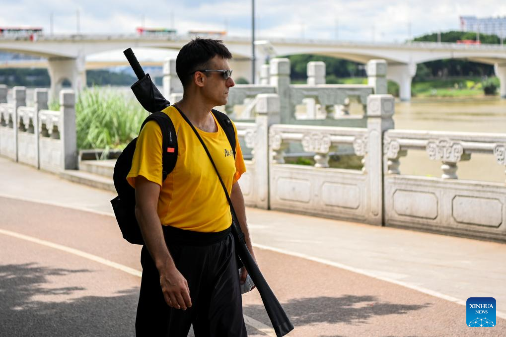 NANNING, 10 julio, 2024 (Xinhua) -- Imagen del 6 de julio de 2024 de Gabriel de Moraes Neto regresando a casa después de su clase de instrucción de artes marciales, en Nanning, en la región autónoma zhuang de Guangxi, en el sur de China. Nacido en 1978, Gabriel de Moraes Neto es oriundo de Río de Janeiro, Brasil. Actualmente es entrenador de artes marciales con sede en Nanning, Guangxi. Inspirado por el Kung Fu de Bruce Lee a temprana edad, Gabriel desarrolló un interés en las artes marciales chinas y comenzó a recibir entrenamiento sistemático en 1999. A medida que su comprensión de las artes marciales y la cultura tradicional china se profundizaba, se llamó a sí mismo "Mo Xiaolong", por el nombre chino de Bruce Lee, "Li Xiaolong". En 2008, Gabriel visitó la Universidad de Medicina China de Beijing como estudiante de intercambio para estudiar acupuntura mientras practicaba artes marciales. Para él, el Kung Fu encarna la medicina tradicional china (MTC) y el fortalecimiento físico, mostrando el encanto de la cultura china. Tras completar sus estudios, Gabriel regresó a Brasil, donde abrió una escuela especializada en entrenamiento de Kung Fu y cursos de acupuntura. En 2011, Gabriel volvió a visitar China y conoció a su alma gemela en Nanning, con quien se casó al año siguiente en Brasil. En 2016, Gabriel y su esposa regresaron a Nanning y decidieron quedarse y trabajar en China. Poco después de su regreso, Gabriel conoció al maestro local de artes marciales Cai Rongkun y se convirtió en entrenador en un club local de artes marciales. En su tiempo libre, a Gabriel le gusta montar bicicleta, el té chino y la caligrafía, al tiempo que aprende técnicas médicas de los practicantes locales de MTC. El comparte sus ideas sobre la cultura de las artes marciales y de la medicina tradicional china en sus cuentas de redes sociales, atrayendo a un importante número de seguidores internacionales. "La cultura tradicional china es realmente cautivadora. Estoy comprometido con el aprendizaje continuo", dijo Gabriel. Este año se celebra el 50 aniversario del establecimiento de relaciones diplomáticas entre China y Brasil. Como expatriado brasileño, Gabriel aspira a servir como embajador cultural para fomentar el entendimiento entre ambos países y promover las ricas tradiciones de China entre los brasileños. (Xinhua/Cao Yiming)