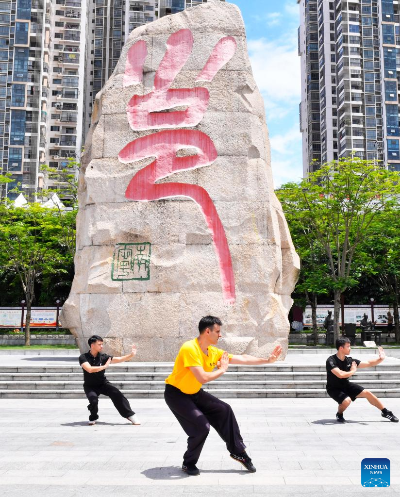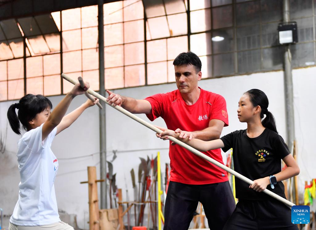 NANNING, 10 julio, 2024 (Xinhua) -- Imagen del 6 de julio de 2024 de Gabriel de Moraes Neto enseñando artes marciales a estudiantes, en Nanning, en la región autónoma zhuang de Guangxi, en el sur de China. Nacido en 1978, Gabriel de Moraes Neto es oriundo de Río de Janeiro, Brasil. Actualmente es entrenador de artes marciales con sede en Nanning, Guangxi. Inspirado por el Kung Fu de Bruce Lee a temprana edad, Gabriel desarrolló un interés en las artes marciales chinas y comenzó a recibir entrenamiento sistemático en 1999. A medida que su comprensión de las artes marciales y la cultura tradicional china se profundizaba, se llamó a sí mismo "Mo Xiaolong", por el nombre chino de Bruce Lee, "Li Xiaolong". En 2008, Gabriel visitó la Universidad de Medicina China de Beijing como estudiante de intercambio para estudiar acupuntura mientras practicaba artes marciales. Para él, el Kung Fu encarna la medicina tradicional china (MTC) y el fortalecimiento físico, mostrando el encanto de la cultura china. Tras completar sus estudios, Gabriel regresó a Brasil, donde abrió una escuela especializada en entrenamiento de Kung Fu y cursos de acupuntura. En 2011, Gabriel volvió a visitar China y conoció a su alma gemela en Nanning, con quien se casó al año siguiente en Brasil. En 2016, Gabriel y su esposa regresaron a Nanning y decidieron quedarse y trabajar en China. Poco después de su regreso, Gabriel conoció al maestro local de artes marciales Cai Rongkun y se convirtió en entrenador en un club local de artes marciales. En su tiempo libre, a Gabriel le gusta montar bicicleta, el té chino y la caligrafía, al tiempo que aprende técnicas médicas de los practicantes locales de MTC. El comparte sus ideas sobre la cultura de las artes marciales y de la medicina tradicional china en sus cuentas de redes sociales, atrayendo a un importante número de seguidores internacionales. "La cultura tradicional china es realmente cautivadora. Estoy comprometido con el aprendizaje continuo", dijo Gabriel. Este año se celebra el 50 aniversario del establecimiento de relaciones diplomáticas entre China y Brasil. Como expatriado brasileño, Gabriel aspira a servir como embajador cultural para fomentar el entendimiento entre ambos países y promover las ricas tradiciones de China entre los brasileños. (Xinhua/Cao Yiming)