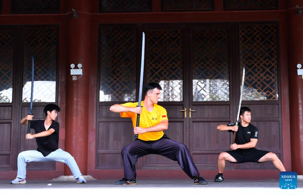 NANNING, 10 julio, 2024 (Xinhua) -- Imagen del 6 de julio de 2024 de Gabriel de Moraes Neto (c) practicando la habilidad del Miaodao, un sable largo a dos manos, con sus compañeros en un parque, en Nanning, en la región autónoma zhuang de Guangxi, en el sur de China. Nacido en 1978, Gabriel de Moraes Neto es oriundo de Río de Janeiro, Brasil. Actualmente es entrenador de artes marciales con sede en Nanning, Guangxi. Inspirado por el Kung Fu de Bruce Lee a temprana edad, Gabriel desarrolló un interés en las artes marciales chinas y comenzó a recibir entrenamiento sistemático en 1999. A medida que su comprensión de las artes marciales y la cultura tradicional china se profundizaba, se llamó a sí mismo "Mo Xiaolong", por el nombre chino de Bruce Lee, "Li Xiaolong". En 2008, Gabriel visitó la Universidad de Medicina China de Beijing como estudiante de intercambio para estudiar acupuntura mientras practicaba artes marciales. Para él, el Kung Fu encarna la medicina tradicional china (MTC) y el fortalecimiento físico, mostrando el encanto de la cultura china. Tras completar sus estudios, Gabriel regresó a Brasil, donde abrió una escuela especializada en entrenamiento de Kung Fu y cursos de acupuntura. En 2011, Gabriel volvió a visitar China y conoció a su alma gemela en Nanning, con quien se casó al año siguiente en Brasil. En 2016, Gabriel y su esposa regresaron a Nanning y decidieron quedarse y trabajar en China. Poco después de su regreso, Gabriel conoció al maestro local de artes marciales Cai Rongkun y se convirtió en entrenador en un club local de artes marciales. En su tiempo libre, a Gabriel le gusta montar bicicleta, el té chino y la caligrafía, al tiempo que aprende técnicas médicas de los practicantes locales de MTC. El comparte sus ideas sobre la cultura de las artes marciales y de la medicina tradicional china en sus cuentas de redes sociales, atrayendo a un importante número de seguidores internacionales. "La cultura tradicional china es realmente cautivadora. Estoy comprometido con el aprendizaje continuo", dijo Gabriel. Este año se celebra el 50 aniversario del establecimiento de relaciones diplomáticas entre China y Brasil. Como expatriado brasileño, Gabriel aspira a servir como embajador cultural para fomentar el entendimiento entre ambos países y promover las ricas tradiciones de China entre los brasileños. (Xinhua/Jin Haoyuan)