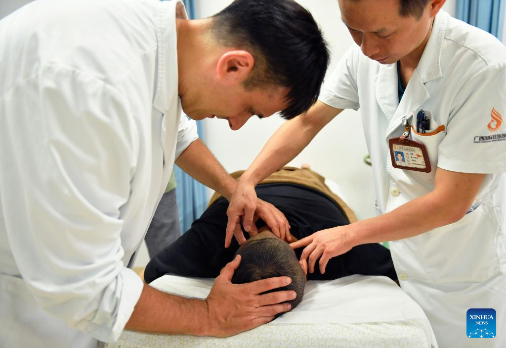 NANNING, 10 julio, 2024 (Xinhua) -- Imagen del 4 de julio de 2024 de Gabriel de Moraes Neto (i) aprendiendo técnicas de masaje del doctor Wen Yong en el Hospital Internacional de Medicina Zhuang de Guangxi, en Nanning, en la región autónoma zhuang de Guangxi, en el sur de China. Nacido en 1978, Gabriel de Moraes Neto es oriundo de Río de Janeiro, Brasil. Actualmente es entrenador de artes marciales con sede en Nanning, Guangxi. Inspirado por el Kung Fu de Bruce Lee a temprana edad, Gabriel desarrolló un interés en las artes marciales chinas y comenzó a recibir entrenamiento sistemático en 1999. A medida que su comprensión de las artes marciales y la cultura tradicional china se profundizaba, se llamó a sí mismo "Mo Xiaolong", por el nombre chino de Bruce Lee, "Li Xiaolong". En 2008, Gabriel visitó la Universidad de Medicina China de Beijing como estudiante de intercambio para estudiar acupuntura mientras practicaba artes marciales. Para él, el Kung Fu encarna la medicina tradicional china (MTC) y el fortalecimiento físico, mostrando el encanto de la cultura china. Tras completar sus estudios, Gabriel regresó a Brasil, donde abrió una escuela especializada en entrenamiento de Kung Fu y cursos de acupuntura. En 2011, Gabriel volvió a visitar China y conoció a su alma gemela en Nanning, con quien se casó al año siguiente en Brasil. En 2016, Gabriel y su esposa regresaron a Nanning y decidieron quedarse y trabajar en China. Poco después de su regreso, Gabriel conoció al maestro local de artes marciales Cai Rongkun y se convirtió en entrenador en un club local de artes marciales. En su tiempo libre, a Gabriel le gusta montar bicicleta, el té chino y la caligrafía, al tiempo que aprende técnicas médicas de los practicantes locales de MTC. El comparte sus ideas sobre la cultura de las artes marciales y de la medicina tradicional china en sus cuentas de redes sociales, atrayendo a un importante número de seguidores internacionales. "La cultura tradicional china es realmente cautivadora. Estoy comprometido con el aprendizaje continuo", dijo Gabriel. Este año se celebra el 50 aniversario del establecimiento de relaciones diplomáticas entre China y Brasil. Como expatriado brasileño, Gabriel aspira a servir como embajador cultural para fomentar el entendimiento entre ambos países y promover las ricas tradiciones de China entre los brasileños. (Xinhua/Jin Haoyuan)