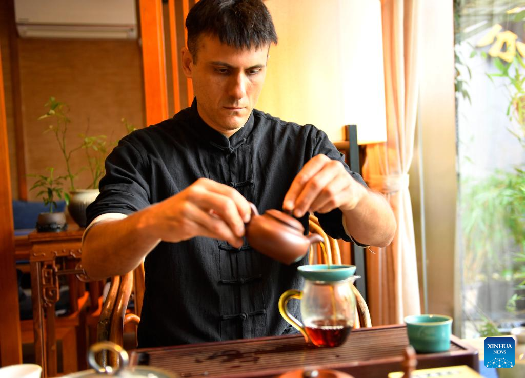 NANNING, 10 julio, 2024 (Xinhua) -- Imagen del 9 de julio de 2024 de Gabriel de Moraes Neto preparando té, en Nanning, en la región autónoma zhuang de Guangxi, en el sur de China. Nacido en 1978, Gabriel de Moraes Neto es oriundo de Río de Janeiro, Brasil. Actualmente es entrenador de artes marciales con sede en Nanning, Guangxi. Inspirado por el Kung Fu de Bruce Lee a temprana edad, Gabriel desarrolló un interés en las artes marciales chinas y comenzó a recibir entrenamiento sistemático en 1999. A medida que su comprensión de las artes marciales y la cultura tradicional china se profundizaba, se llamó a sí mismo "Mo Xiaolong", por el nombre chino de Bruce Lee, "Li Xiaolong". En 2008, Gabriel visitó la Universidad de Medicina China de Beijing como estudiante de intercambio para estudiar acupuntura mientras practicaba artes marciales. Para él, el Kung Fu encarna la medicina tradicional china (MTC) y el fortalecimiento físico, mostrando el encanto de la cultura china. Tras completar sus estudios, Gabriel regresó a Brasil, donde abrió una escuela especializada en entrenamiento de Kung Fu y cursos de acupuntura. En 2011, Gabriel volvió a visitar China y conoció a su alma gemela en Nanning, con quien se casó al año siguiente en Brasil. En 2016, Gabriel y su esposa regresaron a Nanning y decidieron quedarse y trabajar en China. Poco después de su regreso, Gabriel conoció al maestro local de artes marciales Cai Rongkun y se convirtió en entrenador en un club local de artes marciales. En su tiempo libre, a Gabriel le gusta montar bicicleta, el té chino y la caligrafía, al tiempo que aprende técnicas médicas de los practicantes locales de MTC. El comparte sus ideas sobre la cultura de las artes marciales y de la medicina tradicional china en sus cuentas de redes sociales, atrayendo a un importante número de seguidores internacionales. "La cultura tradicional china es realmente cautivadora. Estoy comprometido con el aprendizaje continuo", dijo Gabriel. Este año se celebra el 50 aniversario del establecimiento de relaciones diplomáticas entre China y Brasil. Como expatriado brasileño, Gabriel aspira a servir como embajador cultural para fomentar el entendimiento entre ambos países y promover las ricas tradiciones de China entre los brasileños. (Xinhua/Jin Haoyuan)
