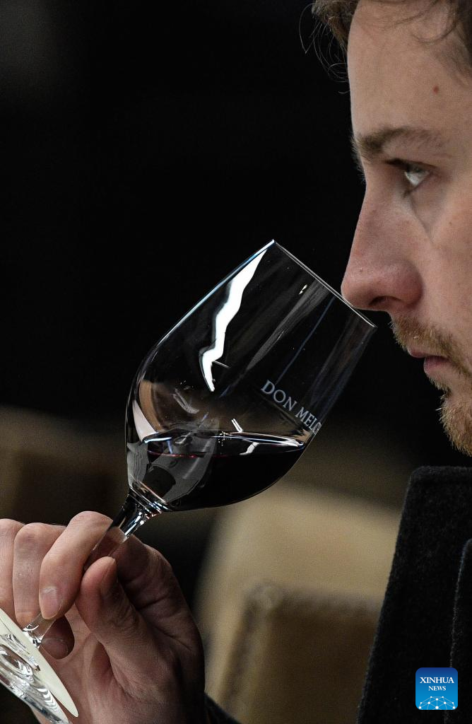 Imagen del 10 de julio de 2024 de un hombre participando durante una degustación de vinos denominada "Don Melchor Winemaking Experience", en la localidad de Pirque, en Santiago, Chile. Los vinos de Chile son invitados estrella en las mesas y estanterías de todo el mundo, estatus que las viñas del país sudamericano quieren aprovechar para posicionar a sus versiones de lujo, a través de su premiada calidad, innovadoras experiencias y un terruño privilegiado en las faldas de la cordillera de Los Andes. (Xinhua/Jorge Villegas)