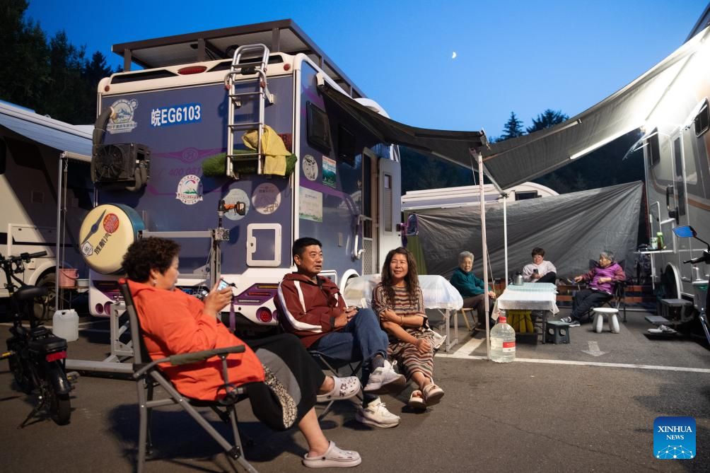 YICHUN, 12 julio, 2024 (Xinhua) -- Imagen del 11 de julio de 2024 de turistas descansando en un campamento de vehículos recreativos, en el Parque Nacional Forestal de Xing'an, en Yichun, en la provincia de Heilongjiang, en el noreste de China. Yichun en la provincia de Heilongjiang, en el noreste de China, se convierte en un destino de viaje popular en verano. Con los abundantes recursos naturales forestales de la ciudad, muchos turistas vienen aquí por su aire fresco y suave temperatura. (Xinhua/Zhang Tao)