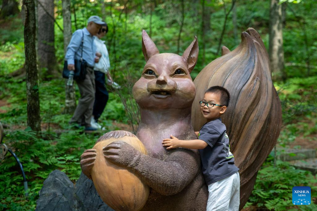 YICHUN, 12 julio, 2024 (Xinhua) -- Imagen del 11 de julio de 2024 de un niño posando para fotografías en el parque forestal del arroyo Shangganling, en Yichun, en la provincia de Heilongjiang, en el noreste de China. Yichun en la provincia de Heilongjiang, en el noreste de China, se convierte en un destino de viaje popular en verano. Con los abundantes recursos naturales forestales de la ciudad, muchos turistas vienen aquí por su aire fresco y suave temperatura. (Xinhua/Zhang Tao)