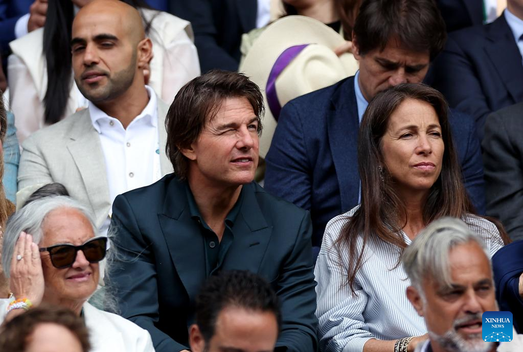 LONDRES, 14 julio, 2024 (Xinhua) -- Imagen del 13 de julio de 2024 de Tom Cruise (c) visto en las gradas durante el partido de la final de individuales femeninos entre Barbora Krejcikova, de República Checa, y Jasmine Paolini, de Italia, en el Campeonato de Tenis de Wimbledon, en Londres, Reino Unido. (Xinhua/Li Ying)