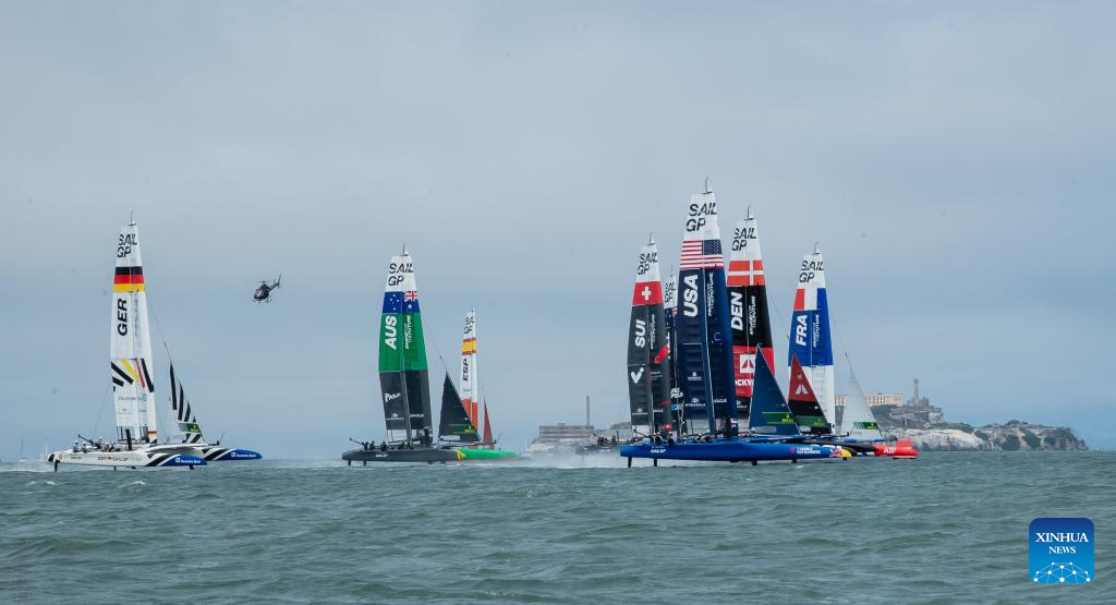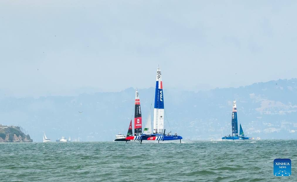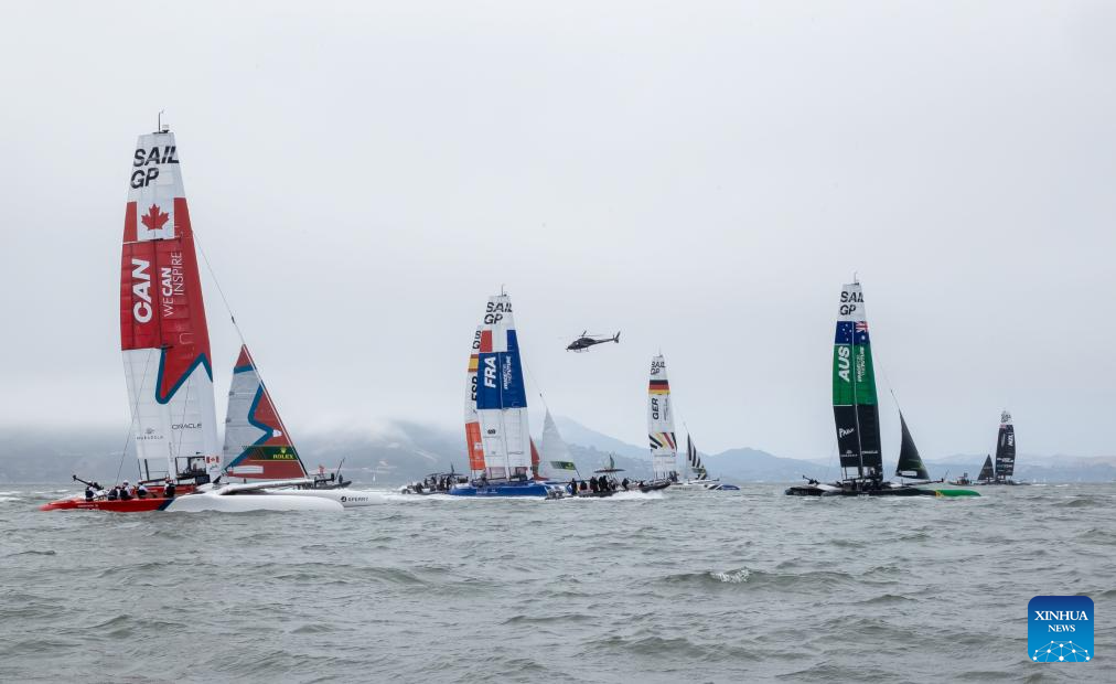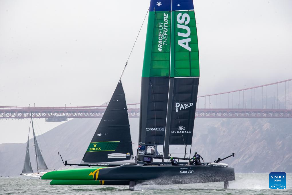 SAN FRANCISCO, 14 julio, 2024 (Xinhua) -- Imagen del 12 de julio de 2024 del equipo de Australia navegando durante la competencia de calentamiento de la SailGP Season 4 Grand Final San Francisco, en San Francisco. (Xinhua/Dong Xudong)