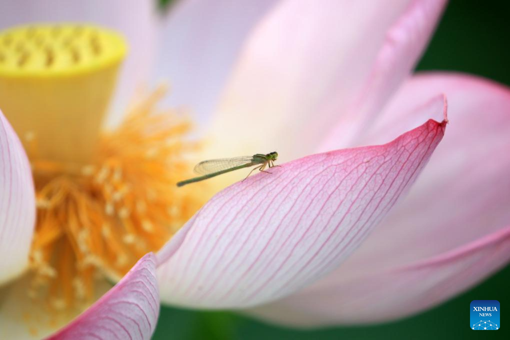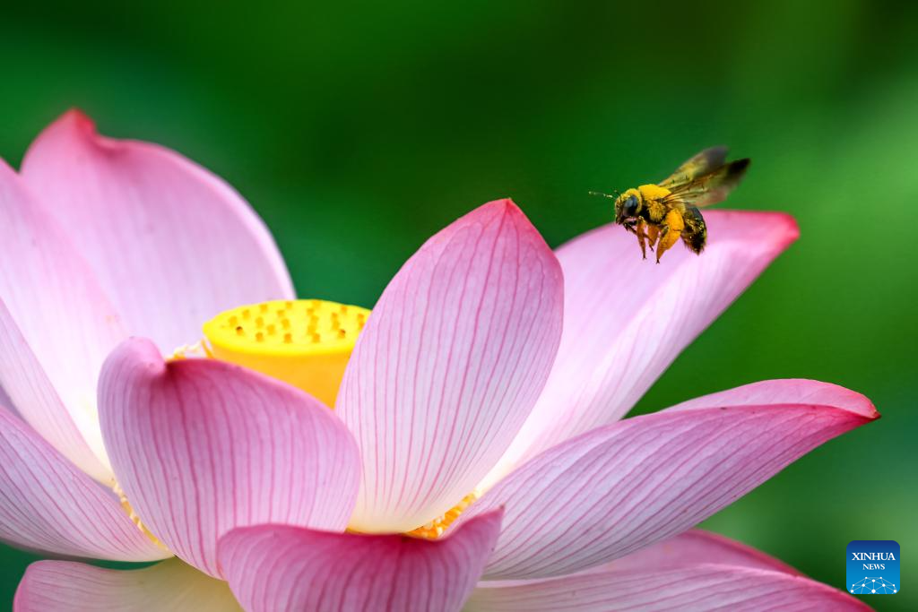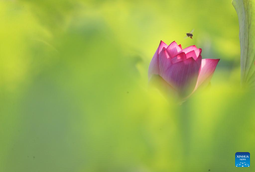 BEIJING, 14 julio, 2024 (Xinhua) -- Imagen del 14 de julio de 2024 de una flor de loto en el parque Nanhu, en Hengyang, en la provincia de Hunan, en el centro de China. (Xinhua/Cao Zhengping)