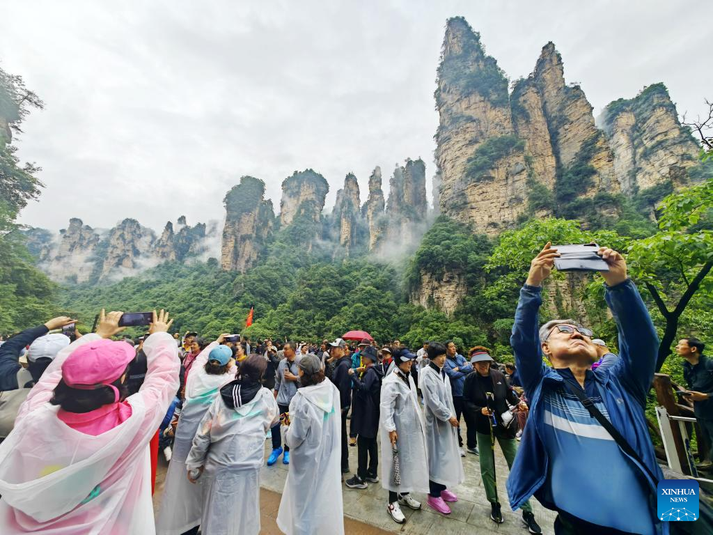 HUNAN, 16 julio, 2024 (Xinhua) -- Imagen del 30 de mayo de 2024 de turistas de República de Corea visitando el Parque Forestal Nacional de la Montaña Tianmen, en Zhangjiajie, en la provincia de Hunan, en el centro de China. (Xinhua/Deng Daoli)