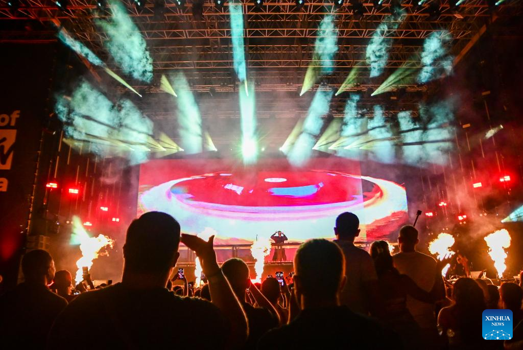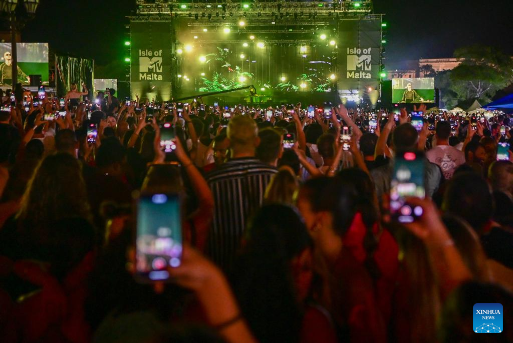 FLORIANA, 17 julio, 2024 (Xinhua) -- Imagen del 16 de julio de 2024 de personas asistiendo a la edición 16 del concierto anual Isla de MTV, en Floriana, Malta. El concierto veraniego al aire libre marca el comienzo de la Semana de la Música de Isla de MTV Malta, que continuará hasta el 21 de julio. (Xinhua/Jonathan Borg)