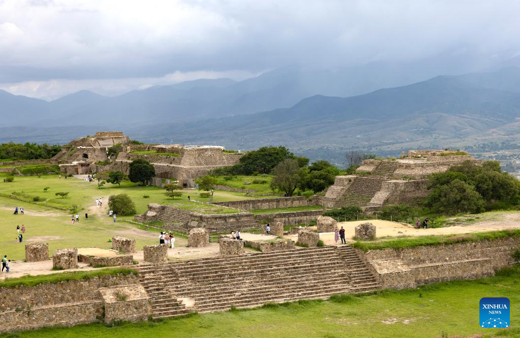 OAXACA, 23 julio, 2024 (Xinhua) -- Imagen del 21 de julio de 2024 de las ruinas, en Monte Albán, México. Fundado alrededor del año 500 a.C., Monte Albán es un gran sitio arqueológico a unos 10 kilómetros de la ciudad de Oaxaca. Fue declarado Sitio del Patrimonio de la Humanidad de la UNESCO en 1987. (Xinhua/Li Mengxin)