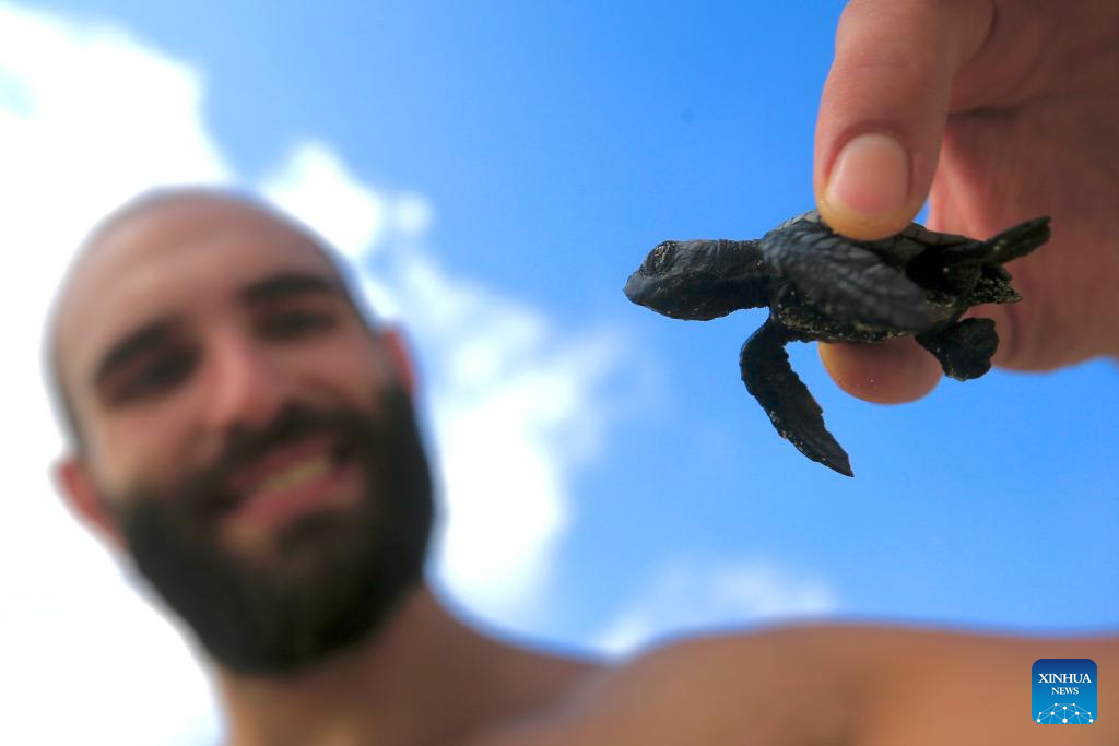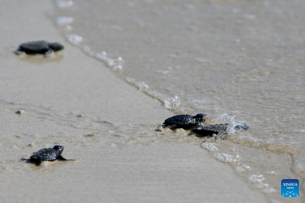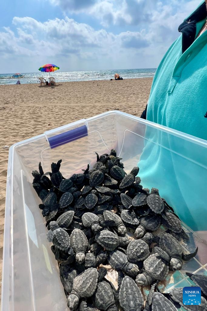 TIRO, 23 julio, 2024 (Xinhua) -- Imagen del 22 de julio de 2024 de tortugas marinas liberadas, en Tiro, Líbano. Aproximadamente 200 crías de tortuga fueron liberadas en el mar el lunes. (Xinhua/Ali Hashisho)