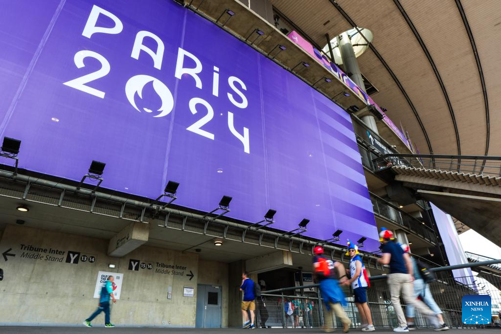 PARIS, 24 julio, 2024 (Xinhua) -- Espectadores entran al Estadio de Francia previo al partido masculino de fase de grupos de rugby 7 de los Juegos Olímpicos de París 2024, en París, Francia, el 24 de julio de 2024. (Xinhua/Xu Chang)