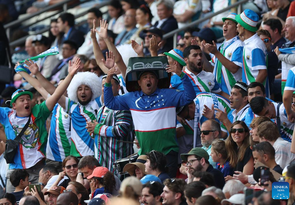 PARIS, 24 julio, 2024 (Xinhua) -- Aficionados animan a los atletas durante el partido de fútbol del grupo C masculino entre Uzbekistán y España de los Juegos Olímpicos de París 2024, en París, Francia, el 24 de julio de 2024. (Xinhua/Huang Zongzhi)